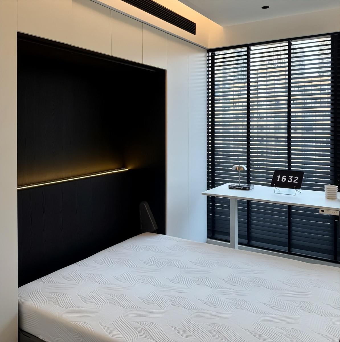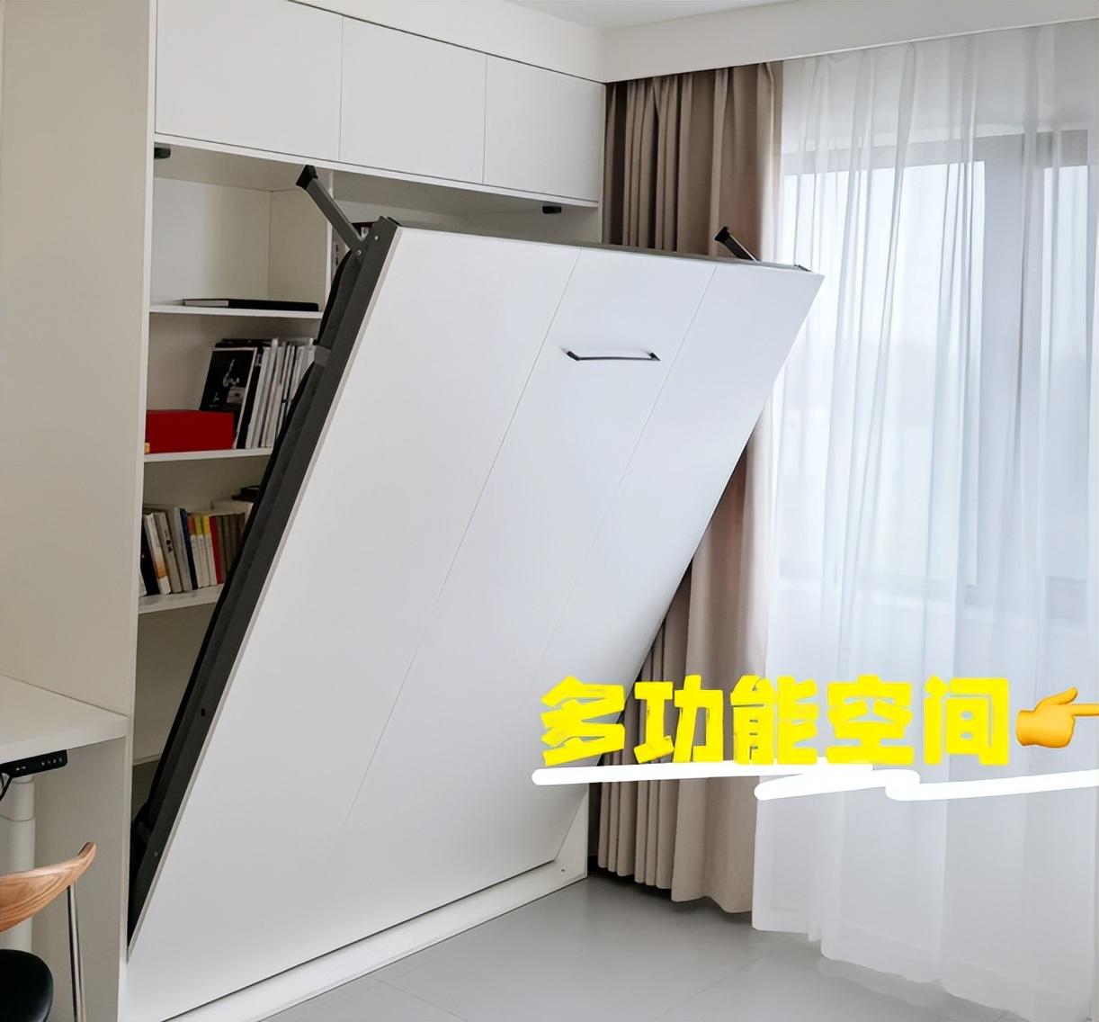 小卧室改造成墨菲床,家里有客人的时候,可以直接把床拉下来使用,